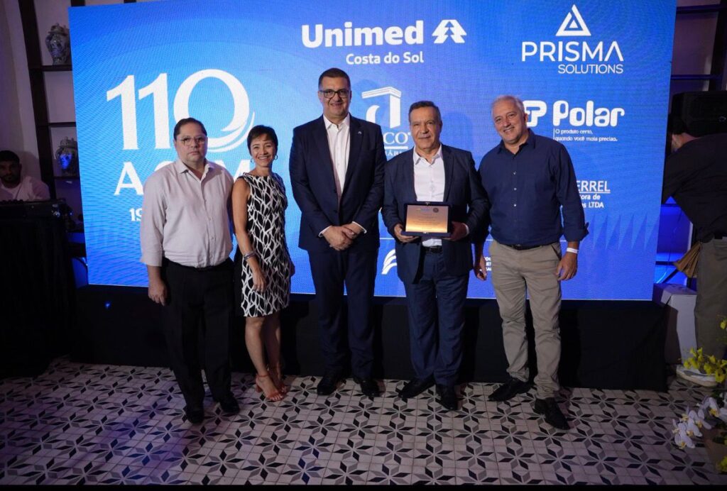 Além dos ex-presidentes, a celebração dos 110 anos da ACIM também registrou homenagem que fortalece a parceria da nossa instituição junto a Unimed Costa do Sol que garante suporte e qualidade de vida à classe empresarial e seus colaboradores.